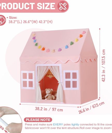 • Kids Play Tent Indoor: with Mat, Tassel Garland, Star Lights - Pink Girl Tent Playhouse for Toddlers Kids Toys for Boy Girl Birthday Gift for KidsNew