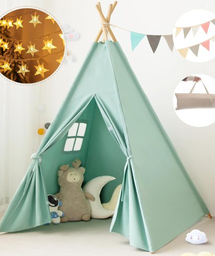 Playhouse Play Tent for Kids-Portable with Padded Mat, Star Lights, Carry Bag, Play Tent Indoor & Outdoor, Washable Kids Play House for Toddler