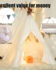 - 【EXQUISITE DESIGN &MULTI-FUNCTIONAL】: This fun-inclined kid’s teepee tent adds to the decoration of any place. Blends perfectly with children rooms, living rooms, and playhouses. Great luxury playroom for kid’s Sleepover Parties, baby showers, weddings, birthdays and beach parties.